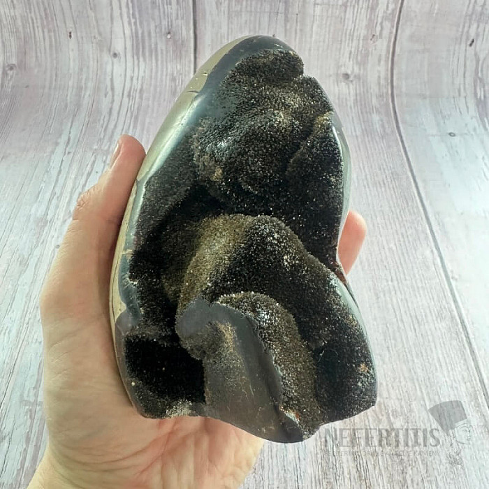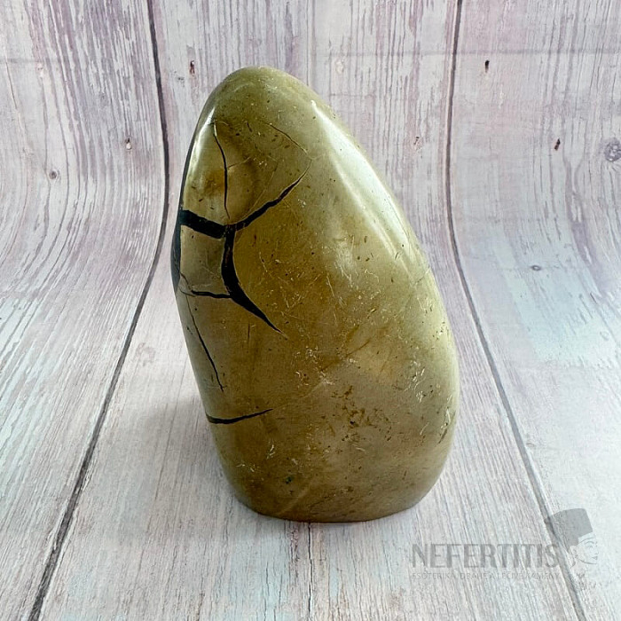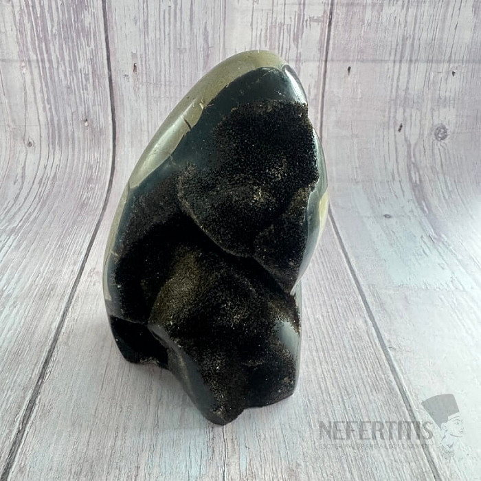 Septaria – Drachenei. Attraktive Dekoration für Wohnung oder Büro. Das Ei steht auf einer polierten Oberfläche.