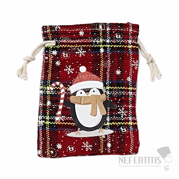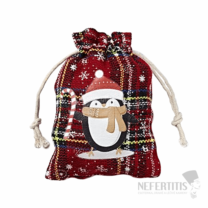 Weihnachtspinguin-Tasche aus Jute-Tartan Mit Kordelzug zur Aufbewahrung kleiner Wertgegenstände, Steine und Schmuck sowie als attraktive Verpackung und Geschenkidee für Ihre Lieben. Geschenktüten und -beutel sind eine einfache und preiswerte Alternative zu Geschenkkartons. Ihre Lieblingsstücke, Schmuck oder Steine sind in dieser Tüte bestens geschützt. Abbildung veranschaulicht.