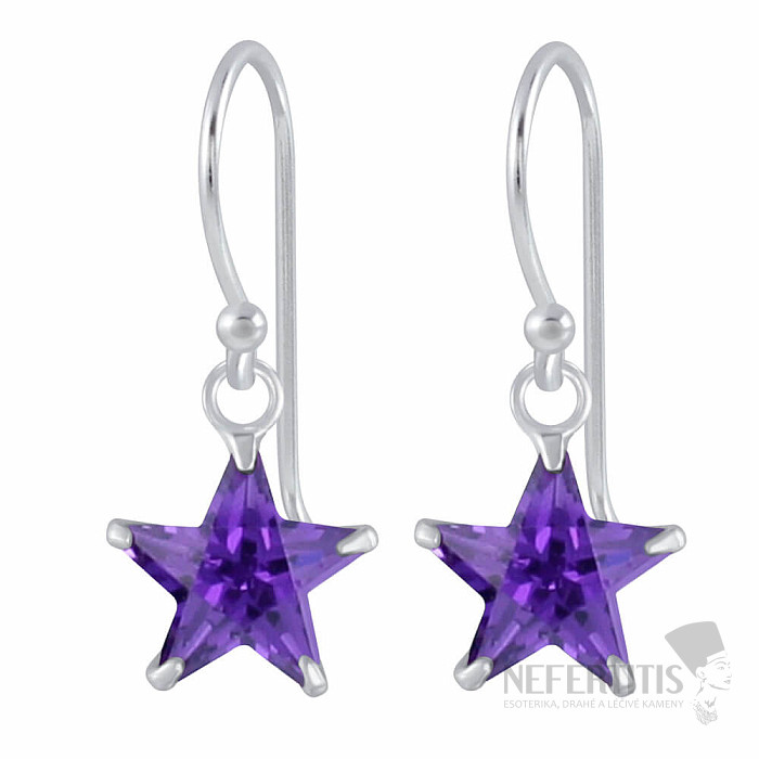 Diese baumelnden Ohrringe aus 925er Sterlingsilber sind mit violetten Sternen verziert, die ein dominantes und dennoch dezentes Element des gesamten Schmuckstücks bilden. Das Sternenmotiv wirkt in Kombination mit der violetten Farbe elegant, originell und leicht mystisch, und die Ohrringe sind dabei alltagstauglich.