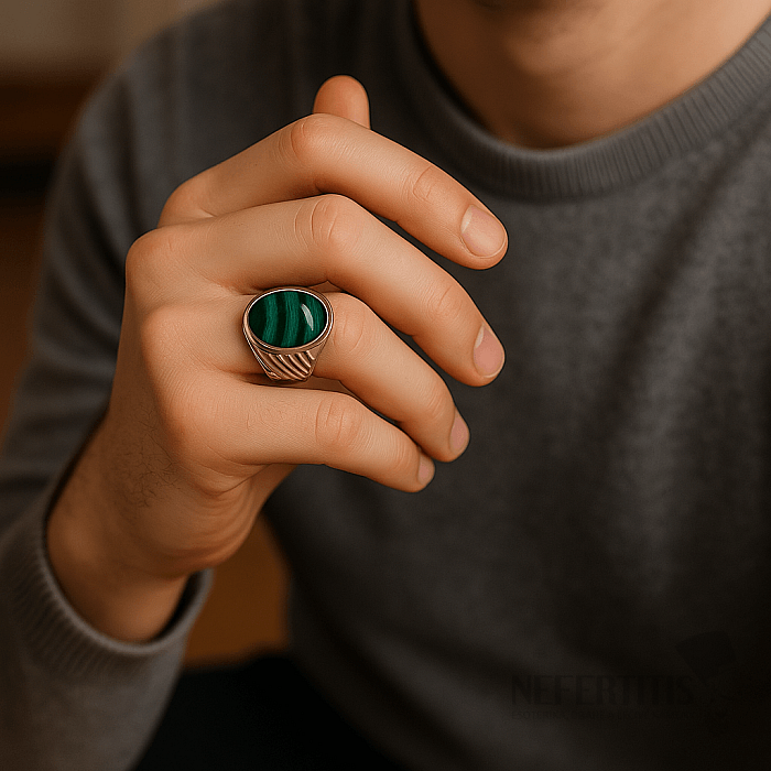Der Träger eines Malachitrings stärkt Mut, Ausdauer und innere Stabilität . Dieser Stein wird auch mit Natur, Wachstum und Neubeginn in Verbindung gebracht.