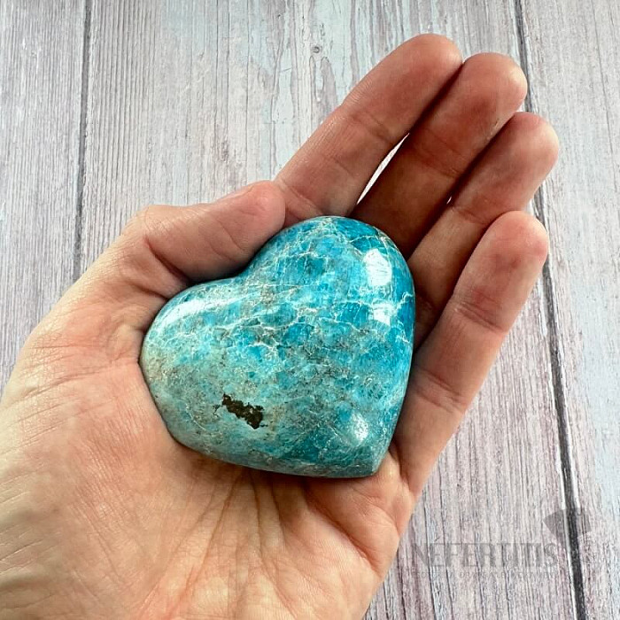 Polierter herzförmiger Apatit in Premiumqualität.