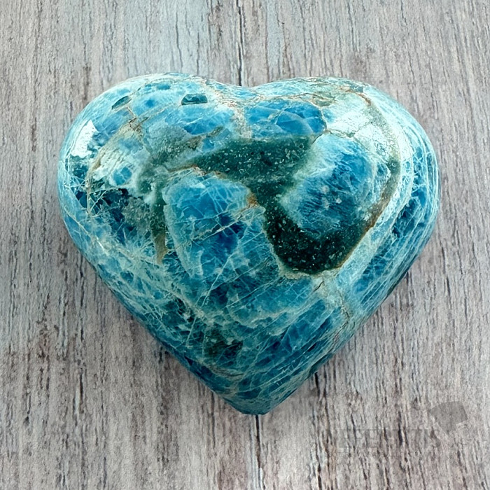 Polierter herzförmiger Apatit in Premiumqualität. Herkunftsland: Madagaskar. Sie erwerben direkt das abgebildete Herz. Hier können Sie Ständer und Podeste für Mineralien kaufen. Blauer Apatit ist ein Stein der… Mehr lesen »