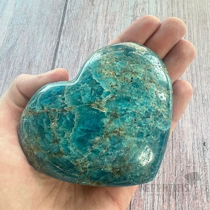 Polierter, herzförmiger Apatit von Premiumqualität.