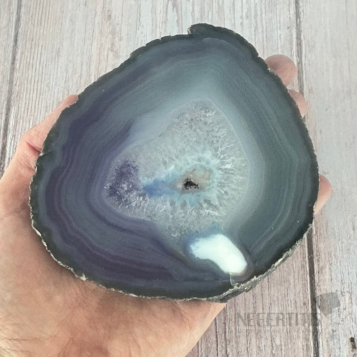 Polierte Achatscheiben werden häufig als Innendekoration, Sammlerstücke und, wenn sie gerade sind, als Untersetzer für Gläser und Tassen verwendet. Eine polierte Achatscheibe betont nicht nur ihre Schönheit, sondern enthüllt auch die feinen Details im Stein, die in seiner natürlichen Form verborgen bleiben.
