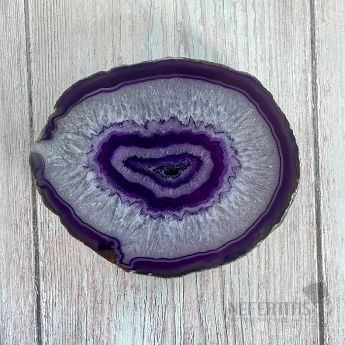 Polierte Achatscheiben werden häufig als Innendekoration, Sammlerstücke und, wenn sie gerade sind, als Untersetzer für Gläser und Tassen verwendet. Eine polierte Achatscheibe betont nicht nur ihre Schönheit, sondern enthüllt auch die feinen Details im Stein, die in seiner natürlichen Form verborgen bleiben.