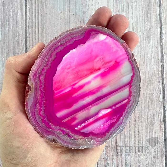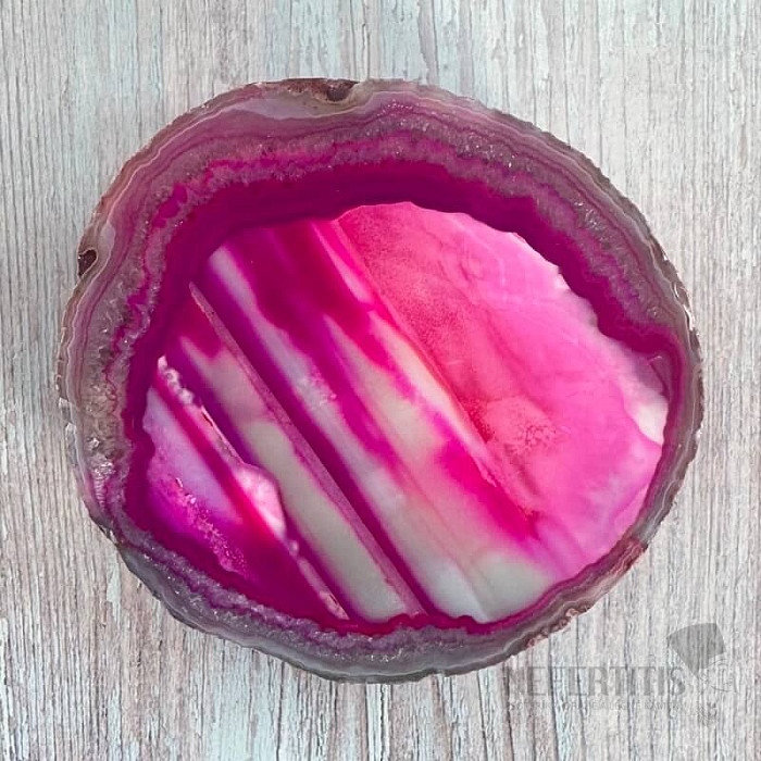 Polierte Achatscheiben werden häufig als Innendekoration, Sammlerstücke und, wenn sie gerade sind, als Untersetzer für Gläser und Tassen verwendet. Eine polierte Achatscheibe betont nicht nur ihre Schönheit, sondern enthüllt auch die feinen Details im Stein, die in seiner natürlichen Form verborgen bleiben.