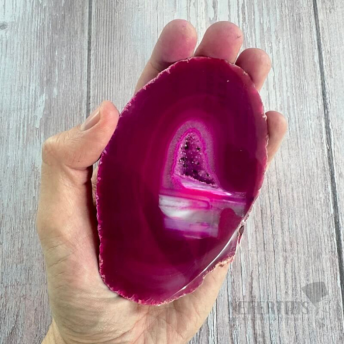 Polierte Achatscheiben werden häufig als Innendekoration, Sammlerstücke und, wenn sie gerade sind, als Untersetzer für Gläser und Tassen verwendet. Eine polierte Achatscheibe betont nicht nur ihre Schönheit, sondern enthüllt auch die feinen Details im Stein, die in seiner natürlichen Form verborgen bleiben.
