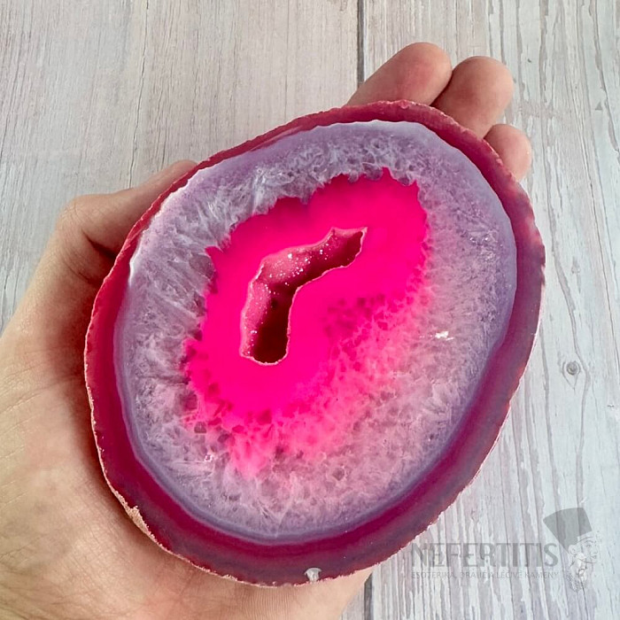 Polierte Achatscheiben werden häufig als Innendekoration, Sammlerstücke und, wenn sie gerade sind, als Untersetzer für Gläser und Tassen verwendet. Eine polierte Achatscheibe betont nicht nur ihre Schönheit, sondern enthüllt auch die feinen Details im Stein, die in seiner natürlichen Form verborgen bleiben.