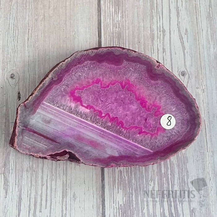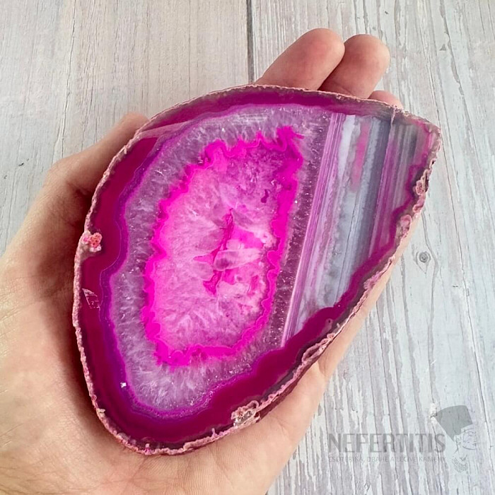 Polierte Achatscheiben werden häufig als Innendekoration, Sammlerstücke und, wenn sie gerade sind, als Untersetzer für Gläser und Tassen verwendet. Eine polierte Achatscheibe betont nicht nur ihre Schönheit, sondern enthüllt auch die feinen Details im Stein, die in seiner natürlichen Form verborgen bleiben.