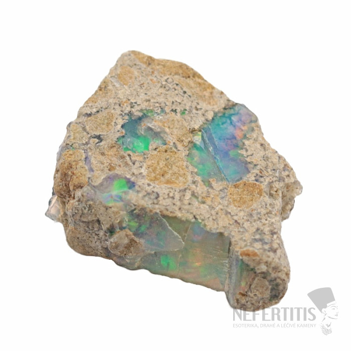 Natürlicher äthiopischer Opal in Gestein in AA-Qualität. Dieser Opal zeichnet sich durch ein wunderschönes Farbenspiel aus, er zählt zu den schönsten der Welt.