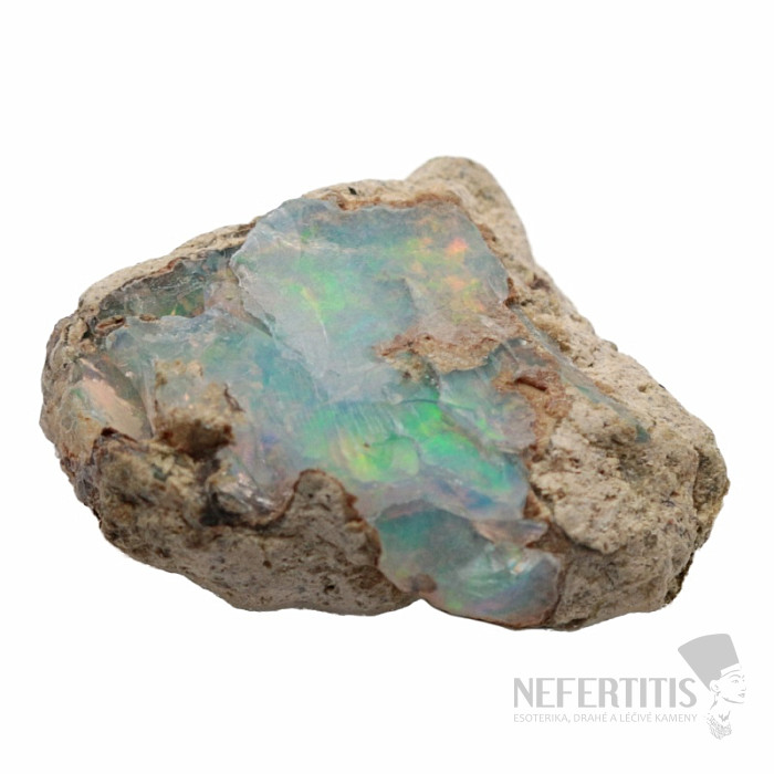 Natürlicher äthiopischer Opal in Gestein in AA-Qualität. Dieser Opal zeichnet sich durch ein wunderschönes Farbenspiel aus, er zählt zu den schönsten der Welt.
