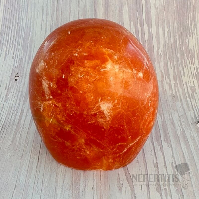 Der Volkstradition zufolge soll Orangencalcit die Lebensenergie und Lebensfreude stärken. Es harmonisiert und balanciert das Sakralchakra. Es soll Entschlossenheit, Selbstvertrauen und Kreativität bringen. Die Farbe von Calcit wird durch das Vorhandensein verschiedener Metalle wie Eisen, Kupfer oder Mangan beeinflusst.