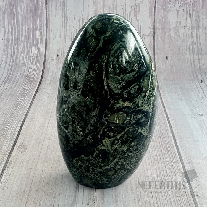Polierter Kambaba-Freiform-Jaspis in Premiumqualität. Herkunftsland: Madagaskar. Sie kaufen hier direkt abgebildeten Kambaba-Jaspis. Kambaba-Jaspis , der auch als Kambaba-Stein oder grüner Stromatolith-Jaspis bekannt… Mehr lesen »
