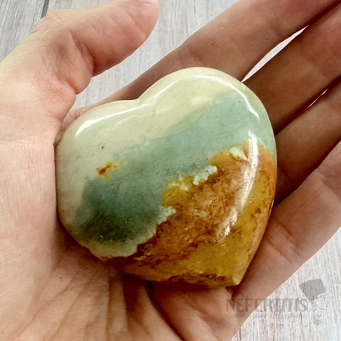 Polierter herzförmiger polychromer Jaspis von ausgesuchter Qualität.