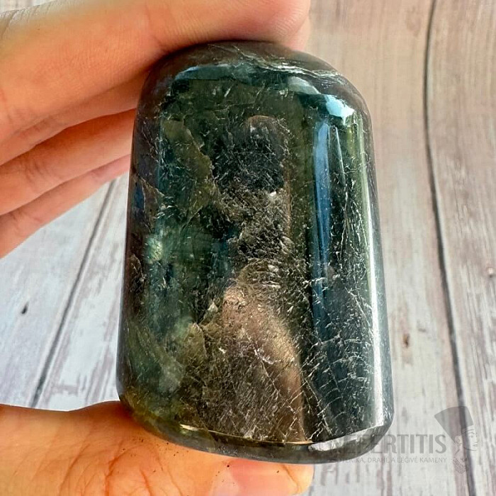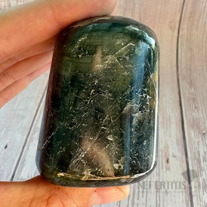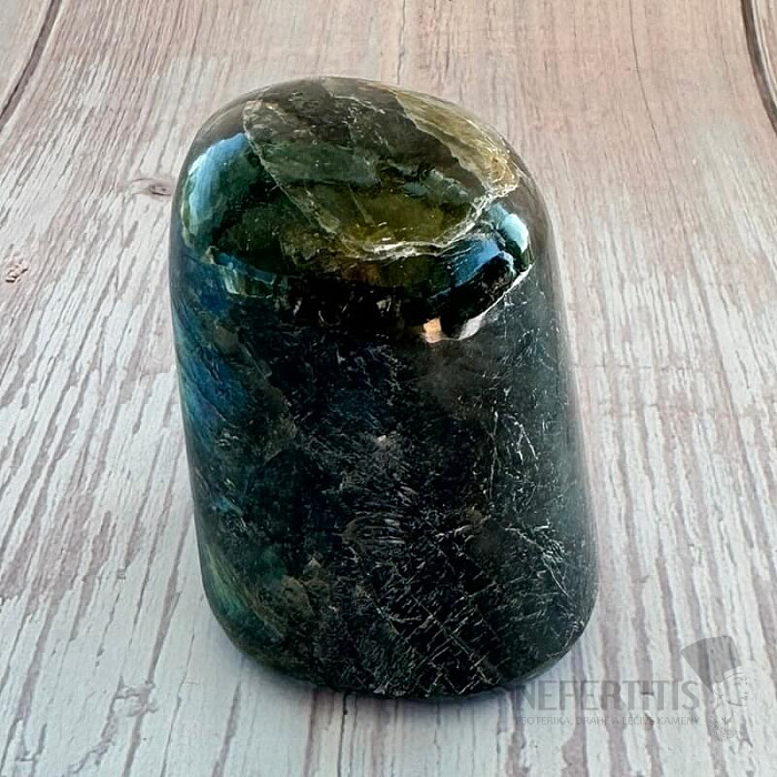 Sie erwerben den abgebildeten Labradorit. Es handelt sich um einen Naturstein, der Haarrisse und andere Unebenheiten aufweisen kann.