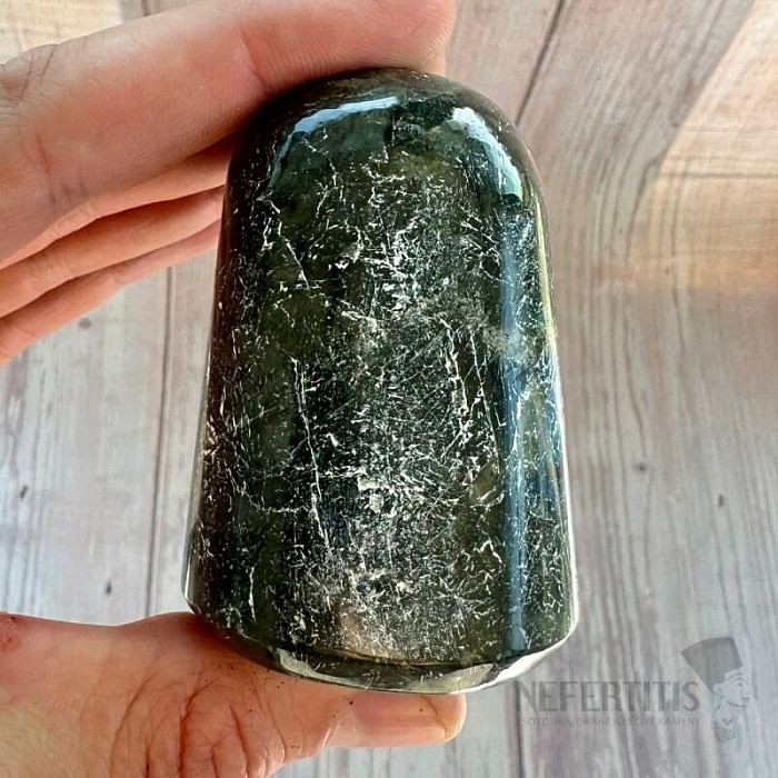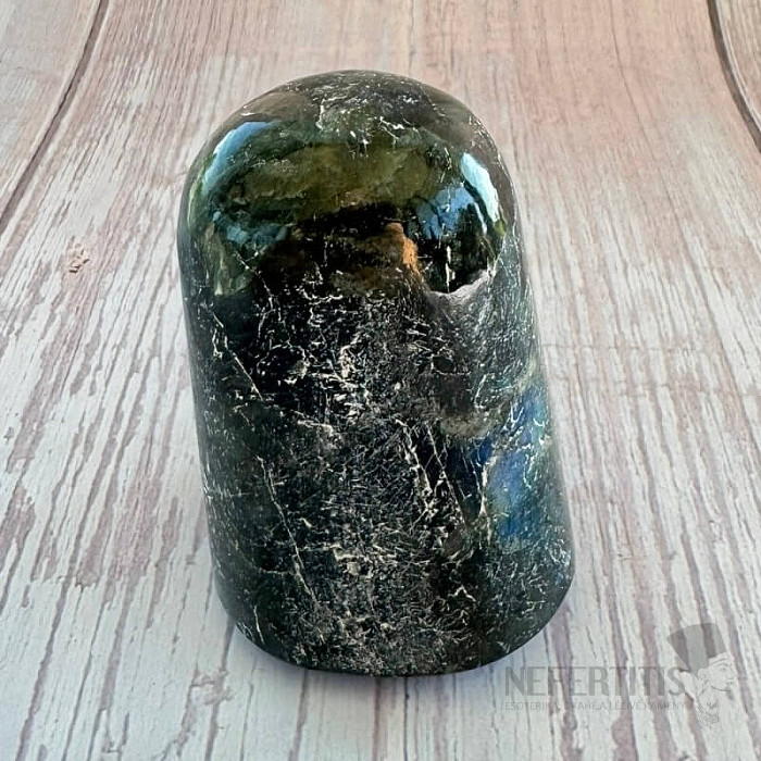 Sie erwerben den abgebildeten Labradorit. Es handelt sich um einen Naturstein, der Haarrisse und andere Unebenheiten aufweisen kann.