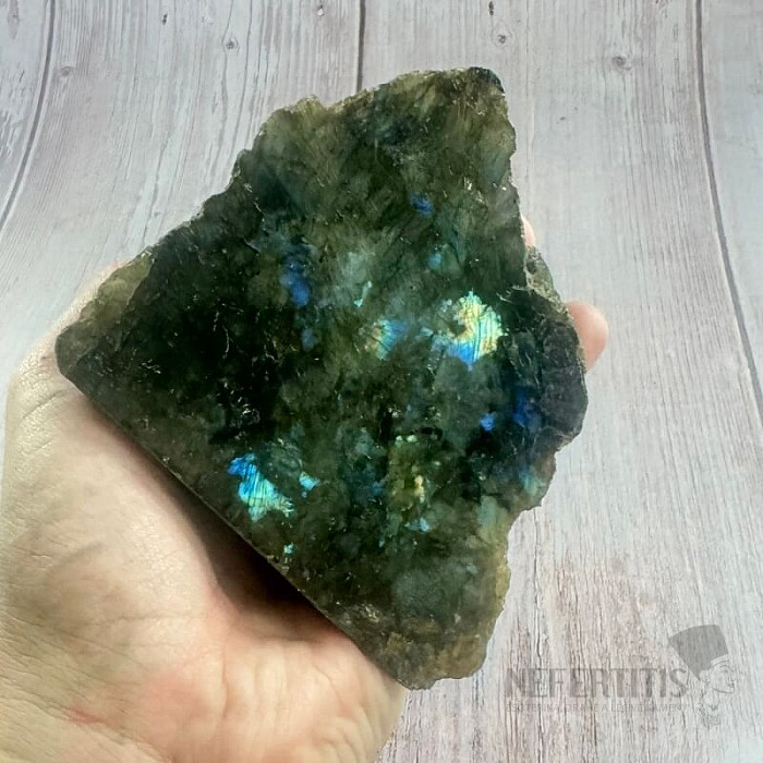 Labradorit ist ein mystischer und schützender Stein. Es bringt Licht ins Leben. Es ist ein Stein des esoterischen Wissens. Es unterstützt die Entwicklung der Intuition und bringt neue Ideen. Entfernt negative Energien, die die Aura angreifen. Es unterdrückt Angst, Unsicherheit, Überreste alter Enttäuschungen und stärkt den Glauben an sich selbst. Beruhigt einen überaktiven Geist. Er weckt verdrängte Erinnerungen an die Vergangenheit, bringt Kraft und Ausdauer, ist ein Stein der Transformation.