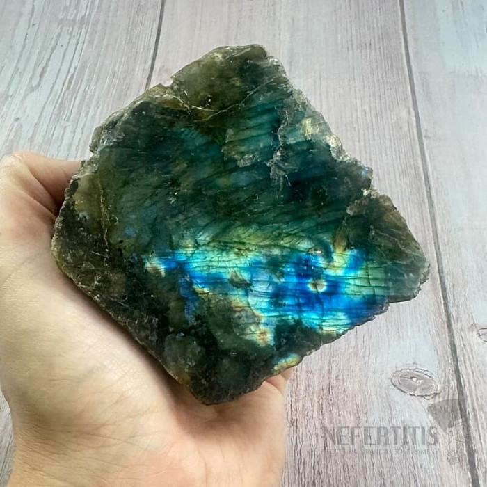 Labradorit ist ein mystischer und schützender Stein. Es bringt Licht ins Leben. Es ist ein Stein des esoterischen Wissens. Es unterstützt die Entwicklung der Intuition und bringt neue Ideen. Entfernt negative Energien, die die Aura angreifen. Es unterdrückt Angst, Unsicherheit, Überreste alter Enttäuschungen und stärkt den Glauben an sich selbst. Beruhigt einen überaktiven Geist. Er weckt verdrängte Erinnerungen an die Vergangenheit, bringt Kraft und Ausdauer, ist ein Stein der Transformation.