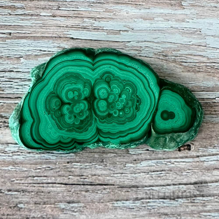Eine polierte, geglättete Malachitscheibe mit einem sehr schönen und deutlichen Muster, beidseitig geglättet mit feinem Glanz. Sie kaufen hier ein direkt abgebildetes Stück Malachit.