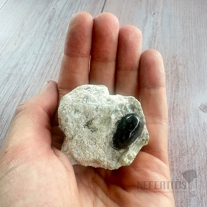 Apache-Tropfenobsidian in Matrix. Diese Obsidianart kommt ausschließlich in Arizona vor. Größe ca. 4,8 cm, Tropfenform ca. 1,9 cm, 79 g. Herkunftsland: USA, Arizona Sie erwerben direkt den abgebildeten… Mehr lesen »