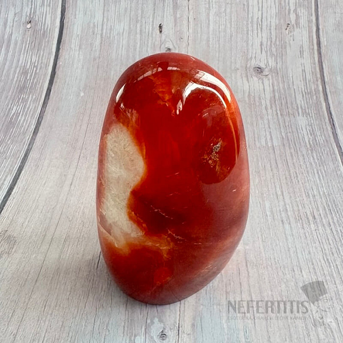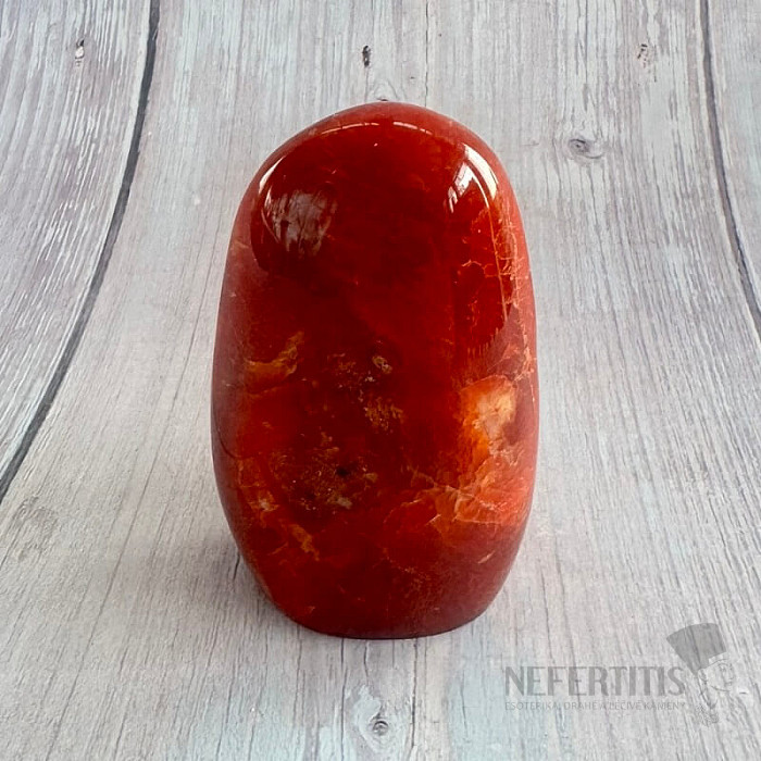 Polierter, freigeformter Karneol. Rot ist die Farbe der Leidenschaft, der Liebe, der Energie und des Mutes.