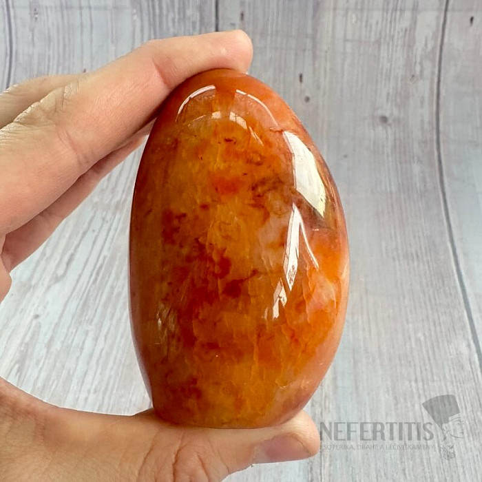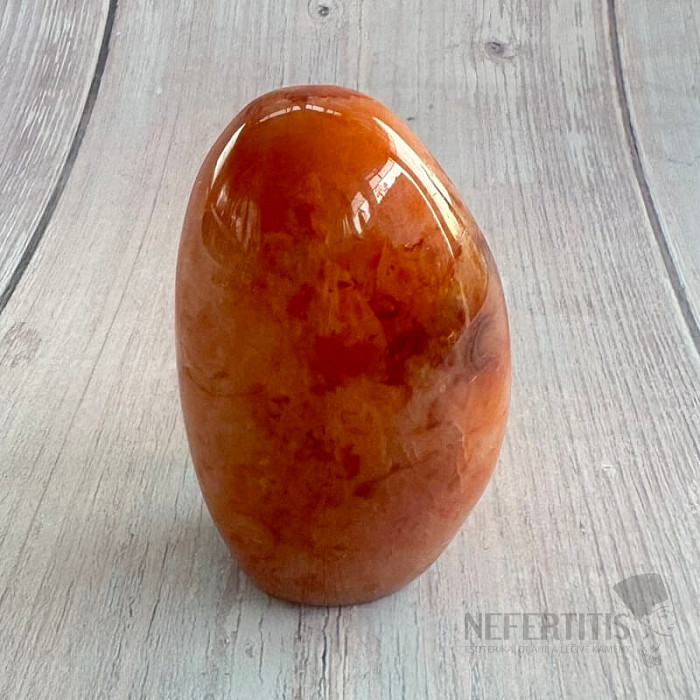 Polierter, freigeformter Karneol. Rot ist die Farbe der Leidenschaft, der Liebe, der Energie und des Mutes.