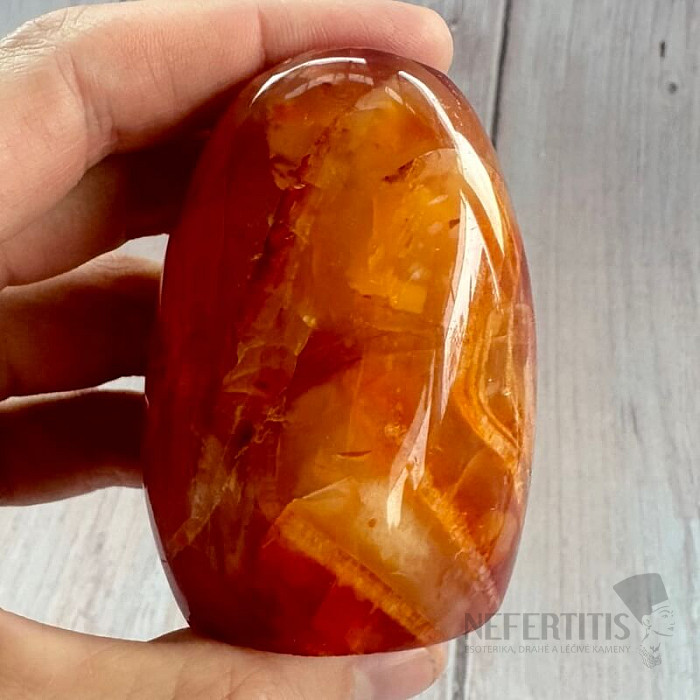 Polierter, freigeformter Karneol. Rot ist die Farbe der Leidenschaft, der Liebe, der Energie und des Mutes.