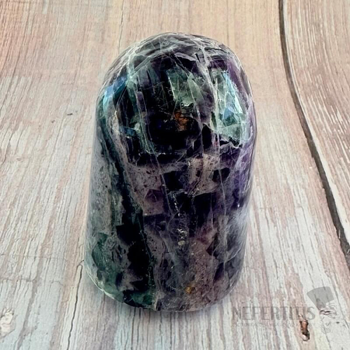 Sammlerstück: handpolierter, frei geformter Regenbogenfluorit mit wunderschönem Muster. Sie kaufen genau das abgebildete Stück.