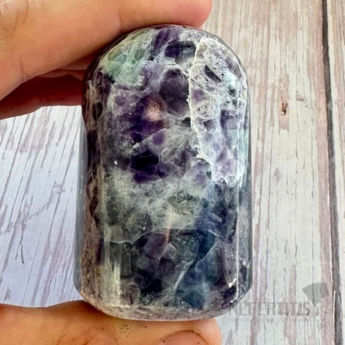 Sammlerstück: handpolierter, frei geformter Regenbogenfluorit mit wunderschönem Muster. Sie kaufen genau das abgebildete Stück. Der Volkstradition zufolge ist Fluorit ein idealer Stein zur Linderung von Stress und… Mehr lesen »