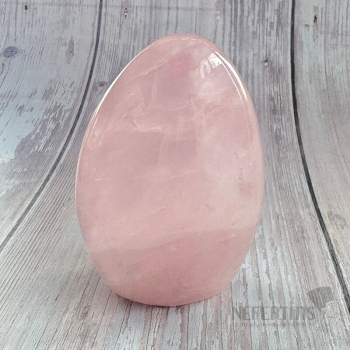 Poliertes Freiform-Rosenquarz in ausgesuchter Qualität.
