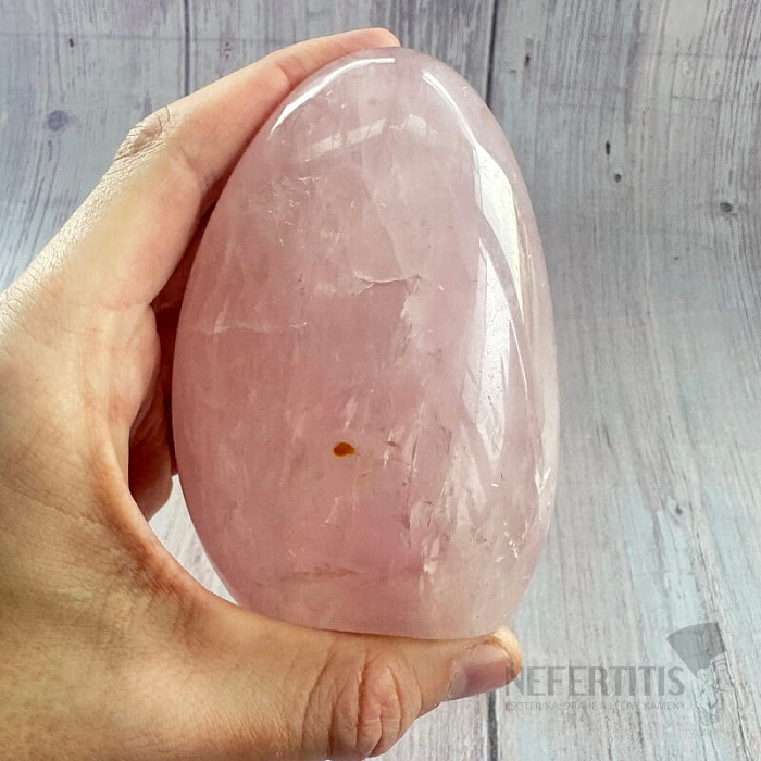 Poliertes Freiform-Rosenquarz in ausgesuchter Qualität.