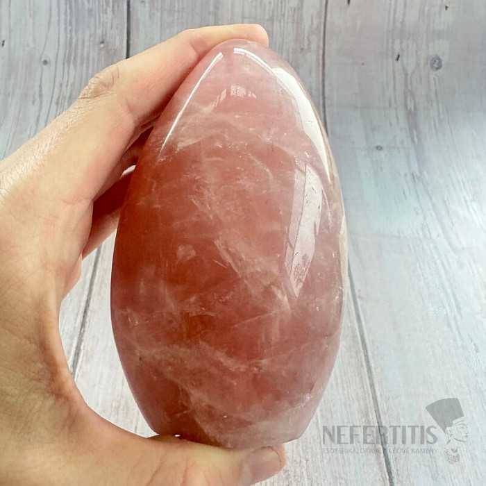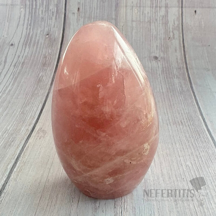 Poliertes Freiform-Rosenquarz in ausgesuchter Qualität.
