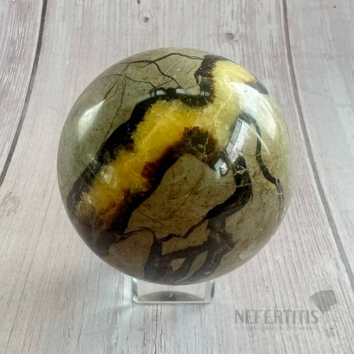 Septaria (auch als Drachenstein bekannt) besteht aus kleinen Kristallen aus Calcit, Aragonit und Chalcedon . Es vereint die Eigenschaften aller Mineralien, aus denen es besteht, und ist damit ein Stein mit äußerst kraftvoller Wirkung. Es bietet starken Energieschutz sowohl auf der physischen, mentalen als auch auf der ätherischen Ebene. Es strahlt eine beruhigende Energie um sich herum aus. Es ist ein ausgezeichneter Verbündeter beim Lernen. Es hilft seinem Besitzer bei der Motivation und anschließend bei der Umsetzung neuer Gedanken und Ideen in die Praxis. Es entwickelt sich positiv zu einer Karriere, insbesondere im Zusammenhang mit öffentlichen Reden. Stimuliert das Basis-Wurzel-Chakra. Es bringt ein erhebendes Gefühl von Freude und innerer Entwicklung.