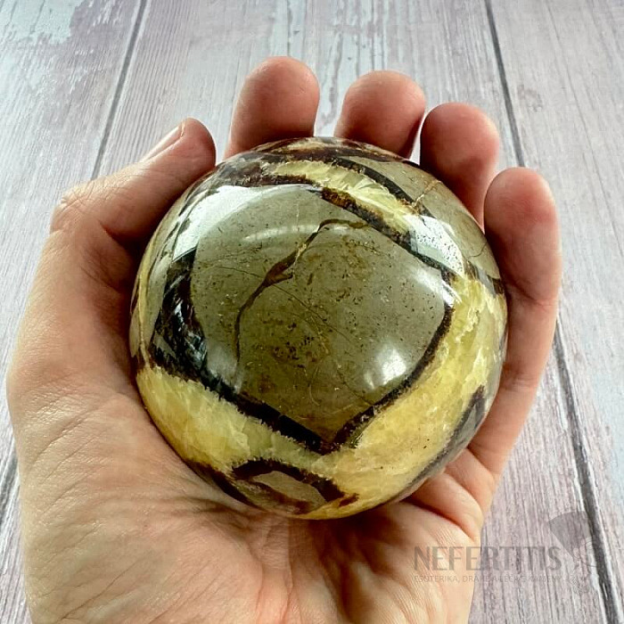 Septaria (auch als Drachenstein bekannt) besteht aus kleinen Kristallen aus Calcit, Aragonit und Chalcedon . Es vereint die Eigenschaften aller Mineralien, aus denen es besteht, und ist damit ein Stein mit äußerst kraftvoller Wirkung. Es bietet starken Energieschutz sowohl auf der physischen, mentalen als auch auf der ätherischen Ebene. Es strahlt eine beruhigende Energie um sich herum aus. Es ist ein ausgezeichneter Verbündeter beim Lernen. Es hilft seinem Besitzer bei der Motivation und anschließend bei der Umsetzung neuer Gedanken und Ideen in die Praxis. Es entwickelt sich positiv zu einer Karriere, insbesondere im Zusammenhang mit öffentlichen Reden. Stimuliert das Basis-Wurzel-Chakra. Es bringt ein erhebendes Gefühl von Freude und innerer Entwicklung.
