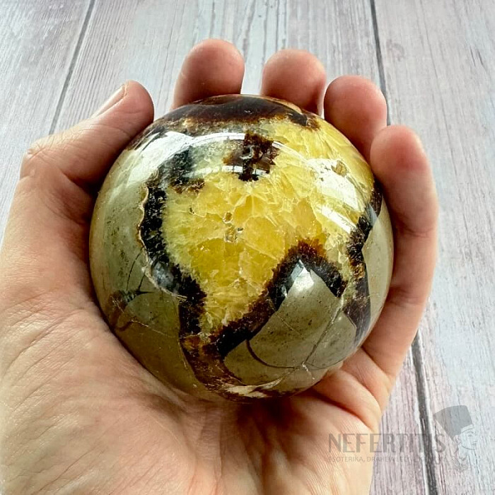 Septaria (auch als Drachenstein bekannt) besteht aus kleinen Kristallen aus Calcit, Aragonit und Chalcedon . Es vereint die Eigenschaften aller Mineralien, aus denen es besteht, und ist damit ein Stein mit äußerst kraftvoller Wirkung. Es bietet starken Energieschutz sowohl auf der physischen, mentalen als auch auf der ätherischen Ebene. Es strahlt eine beruhigende Energie um sich herum aus. Es ist ein ausgezeichneter Verbündeter beim Lernen. Es hilft seinem Besitzer bei der Motivation und anschließend bei der Umsetzung neuer Gedanken und Ideen in die Praxis. Es entwickelt sich positiv zu einer Karriere, insbesondere im Zusammenhang mit öffentlichen Reden. Stimuliert das Basis-Wurzel-Chakra. Es bringt ein erhebendes Gefühl von Freude und innerer Entwicklung.