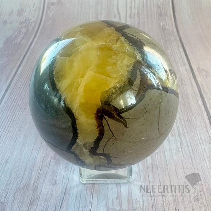 Septaria (auch als Drachenstein bekannt) besteht aus kleinen Kristallen aus Calcit, Aragonit und Chalcedon . Es vereint die Eigenschaften aller Mineralien, aus denen es besteht, und ist damit ein Stein mit äußerst kraftvoller Wirkung. Es bietet starken Energieschutz sowohl auf der physischen, mentalen als auch auf der ätherischen Ebene. Es strahlt eine beruhigende Energie um sich herum aus. Es ist ein ausgezeichneter Verbündeter beim Lernen. Es hilft seinem Besitzer bei der Motivation und anschließend bei der Umsetzung neuer Gedanken und Ideen in die Praxis. Es entwickelt sich positiv zu einer Karriere, insbesondere im Zusammenhang mit öffentlichen Reden. Stimuliert das Basis-Wurzel-Chakra. Es bringt ein erhebendes Gefühl von Freude und innerer Entwicklung.