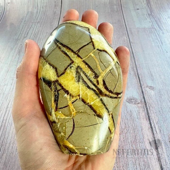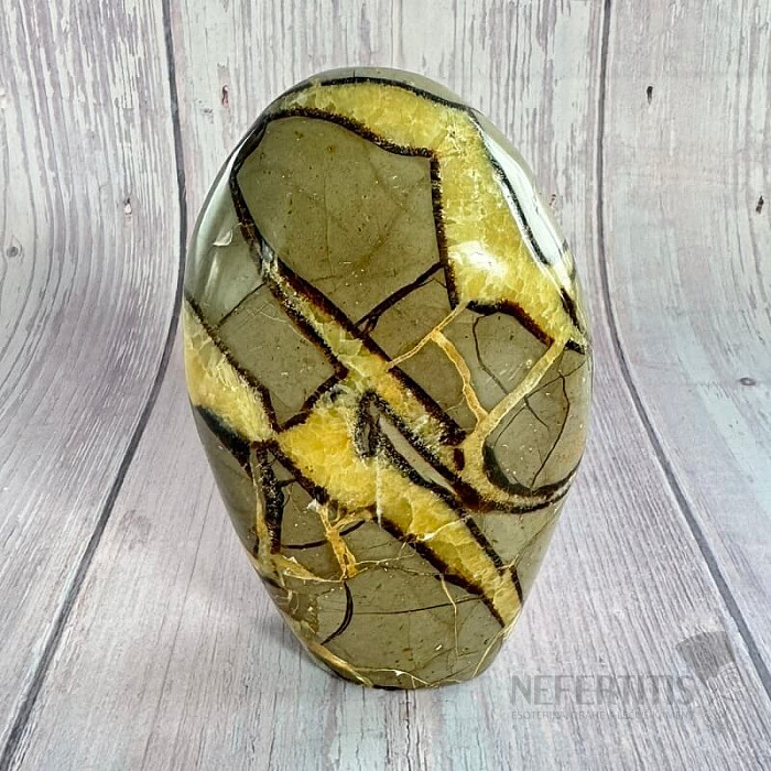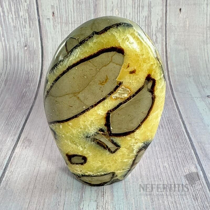 Septaria (auch als Drachenstein bekannt) besteht aus winzigen Kristallen aus Kalzit, Aragonit und Chalcedon . Er vereint die Eigenschaften aller Mineralien, aus denen er besteht, und ist somit ein Stein mit außergewöhnlich starker Wirkung. Es bietet starken energetischen Schutz auf physischer, mentaler und ätherischer Ebene. Es sendet beruhigende Energie aus. Es ist ein ausgezeichneter Verbündeter beim Lernen. Es hilft seinem Besitzer bei der Motivation und dabei, neue Gedanken und Ideen in die Tat umzusetzen. Er entwickelt seine Karriere positiv, insbesondere im Zusammenhang mit dem öffentlichen Reden. Stimuliert das Basis-Wurzelchakra. Es vermittelt ein erhebendes Gefühl der Freude und inneren Entwicklung.