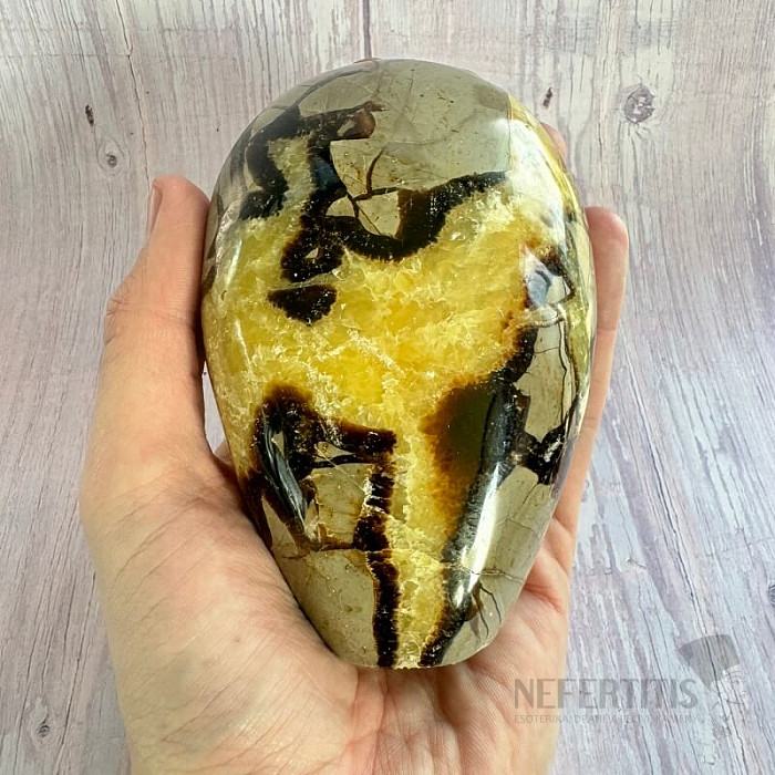 Septaria (auch als Drachenstein bekannt) besteht aus winzigen Kristallen aus Kalzit, Aragonit und Chalcedon . Er vereint die Eigenschaften aller Mineralien, aus denen er besteht, und ist somit ein Stein mit außergewöhnlich starker Wirkung. Es bietet starken energetischen Schutz auf physischer, mentaler und ätherischer Ebene. Es sendet beruhigende Energie aus. Es ist ein ausgezeichneter Verbündeter beim Lernen. Es hilft seinem Besitzer bei der Motivation und dabei, neue Gedanken und Ideen in die Tat umzusetzen. Er entwickelt seine Karriere positiv, insbesondere im Zusammenhang mit dem öffentlichen Reden. Stimuliert das Basis-Wurzelchakra. Es vermittelt ein erhebendes Gefühl der Freude und inneren Entwicklung.