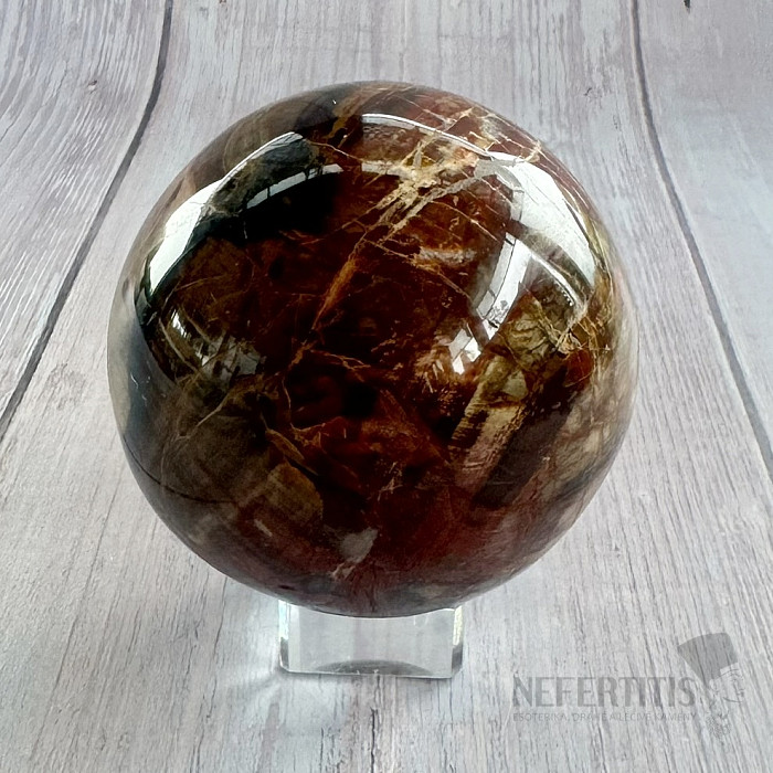 Eine polierte Kugel aus versteinertem Holz.