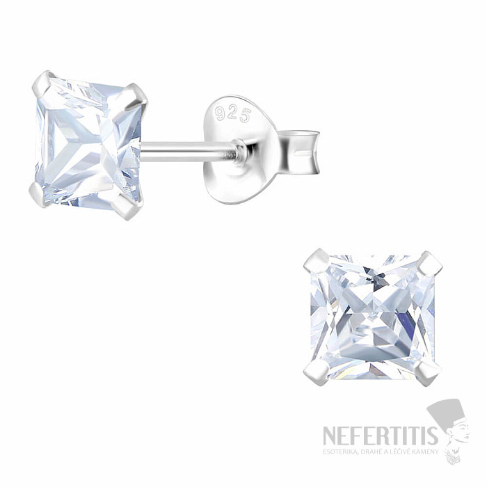 00333 Silberohrringe mit Zirkonen 5 mm QUADRAT