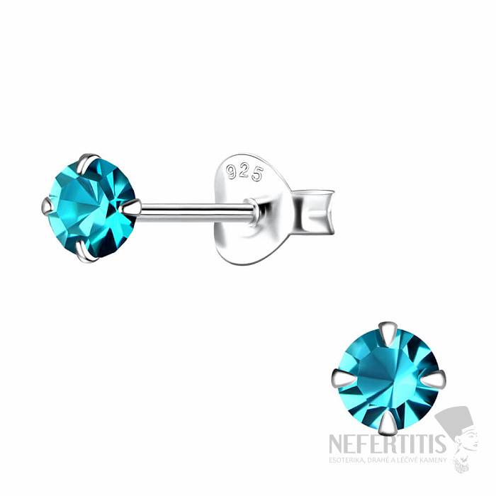 00533 Silberohrringe mit Zirkonen 4mm BLAU