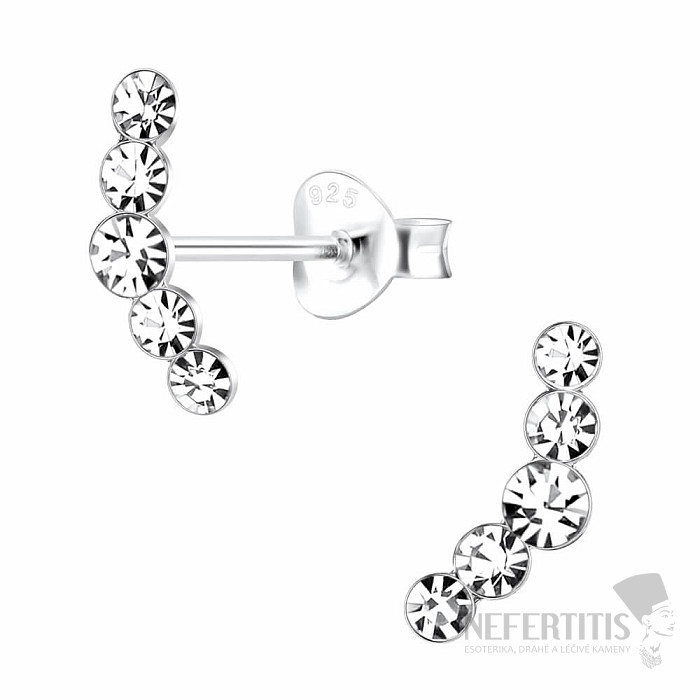 Diese Ohrstecker aus 925er Sterlingsilber sind mit mehreren weißen Zirkonia besetzt, die in einem eleganten Bogen angeordnet sind. Das Design arbeitet mit einem subtilen Farbverlauf der Steingrößen, wodurch die Ohrringe leicht, dynamisch und sehr harmonisch wirken.