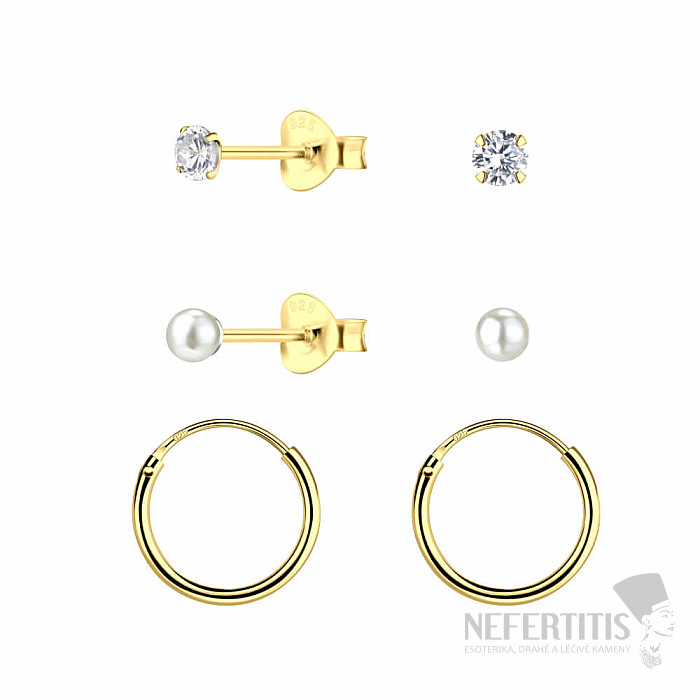 34073 Silberne Ohrringe, Steine und Kreise, vergoldet, Basisset