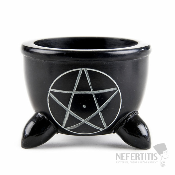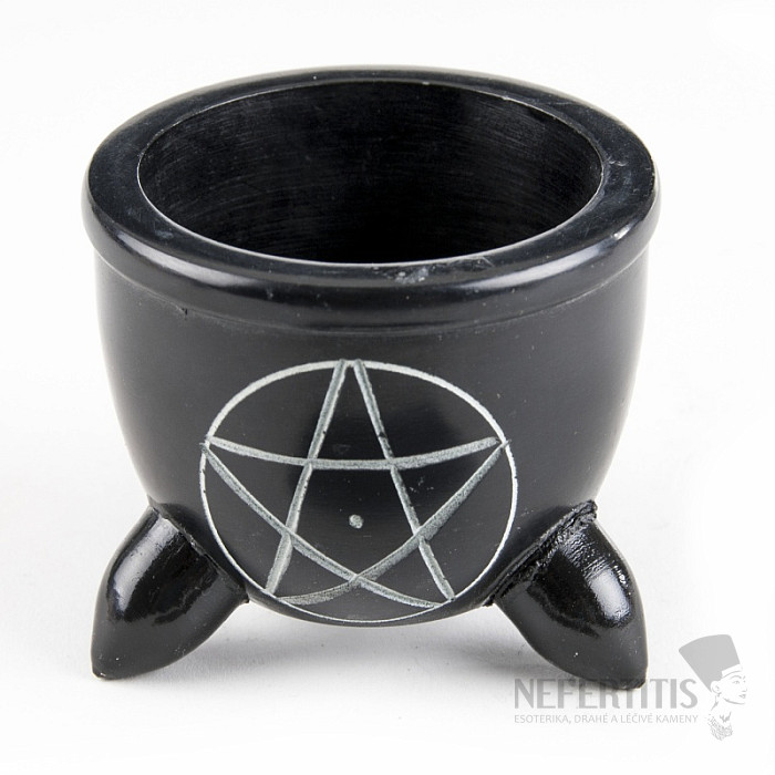 Der Räuchergefäß ist aus natürlichem Speckstein gefertigt , einem hitzebeständigen Stein, der sich ideal zum Verbrennen von Weihrauch, Harzen, Kräutern oder Räucherkegeln eignet . Seine Oberfläche ist glatt poliert und mit einer markanten Pentagrammgravur verziert , die Ritualen und dem Raum eine magische Energie verleiht.