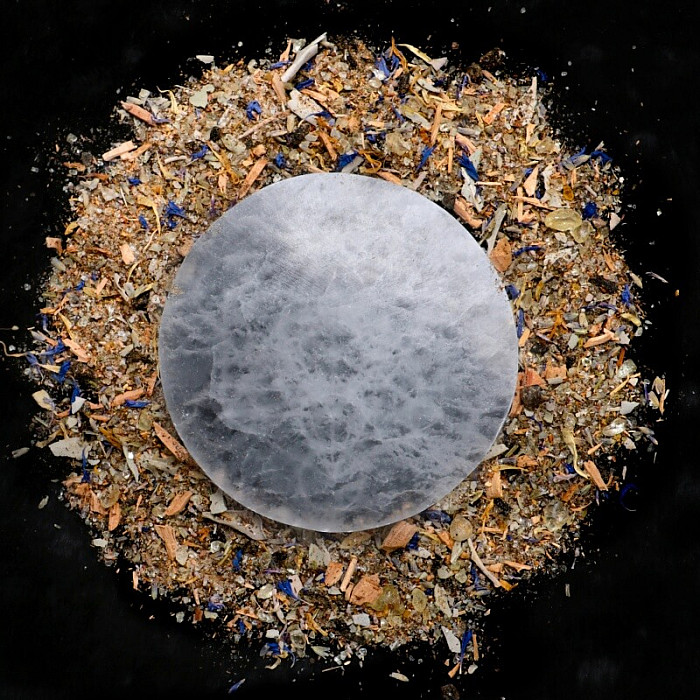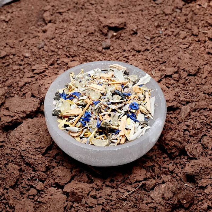 Diese Mischung entsteht in unserer magischen Werkstatt in Nefertitis. Sie enthält Harze, Salbei, Lavendel, Weihrauch und weitere Zutaten. Jede Mischung wird mit Liebe und Segenswünschen für Harmonie und inneren Frieden von Hand gemischt , mit rohem Mondstein als Symbol der Verbindung mit der Energie des Mondes.