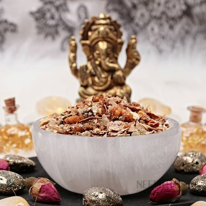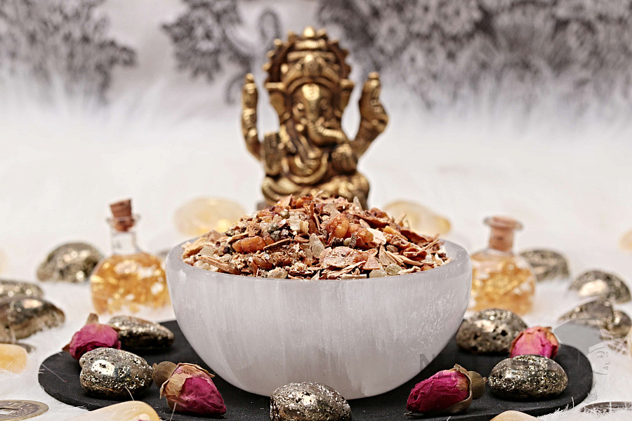 Die Nefertitis -Räuchermischung „Fülle und Wohlstand “ ist eine in unserer magischen Werkstatt handgemischte Ritualmischung aus ausgewählten Harzen, Kräutern und Gewürzen, die die Anziehung von Fülle, Wohlstand und Glück in Ihr Leben sowie Erfolg in Beruf und Geschäft unterstützt. Sie verbindet traditionelle Räuchermischungen alter Kulturen mit einem modernen Konzept der Energiearbeit. Das Aroma ist warm, würzig, harzig mit subtilen Zitrusnoten – es vermittelt ein Gefühl von Freude, Offenheit und Vertrauen in den Fluss des Lebens. Die Mischung enthält Harze, Zimt, Orangenschale, weißes Sandelholz und weitere Zutaten.