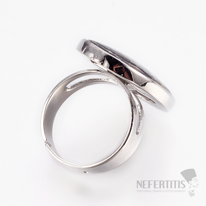 Dank seiner großen, markanten ovalen Form wird der Ring zu einem dominanten Schmuckstück, das sofort die Blicke auf sich zieht. Er eignet sich sowohl für festliche Anlässe als auch als originelles Accessoire zu einem modernen Outfit.