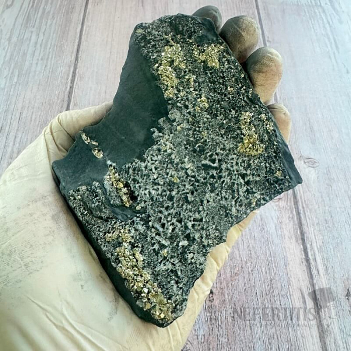 Sammlung roher Schungit mit Pyritkristallen . Sie kaufen hier direkt den abgebildeten Artikel