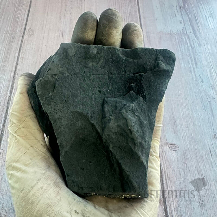 Verwendung: Derzeit werden die Wirkungen von Schungit und seine chemischen Eigenschaften zunehmend erforscht, in großem Maßstab werden daraus Wasserfilter hergestellt. Der Legende nach war Schungit bereits zur Zeit von Zar Peter I. bekannt, der es vor der Schlacht mit dem schwedischen König bei Poltawa zur Wasserreinigung seiner Armee nutzte. Schungit wird oft nachgesagt, dass es Wasser reinigt und es trinkbarer macht. Sowohl die schwedische Armee als auch der König litten vor der Schlacht unter Magenbeschwerden.
