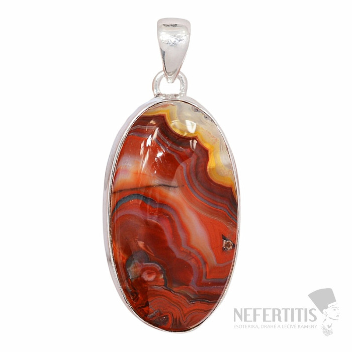 Silberanhänger mit seltenem mexikanischem Laguna Lace Achat . Spitzenachat ist ein bezauberndes Schmuckstück, denn seine buchstäblich spektakulären Farben machen Laguna Spitzenachat zum wertvollsten Streifenachat der Welt . Dieser Anhänger hat ein wunderschönes Design und eine schöne Form, die ihn zu einem unverzichtbaren Schmuckstück machen. Ag 925. Sie kaufen das direkt abgebildete Schmuckstück.